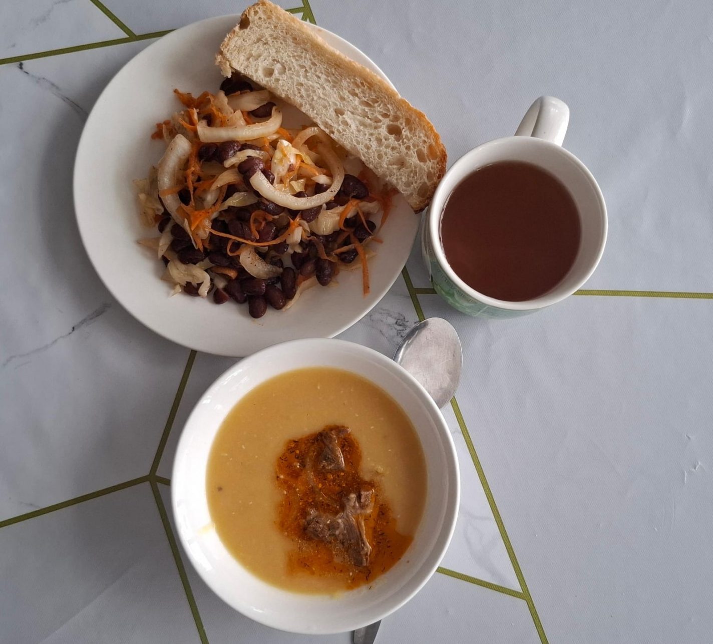 Ақ қырыққабат, бұршақ және сәбіз қосылған салат