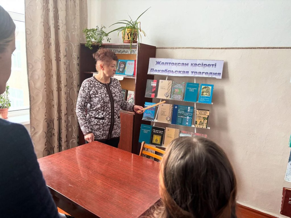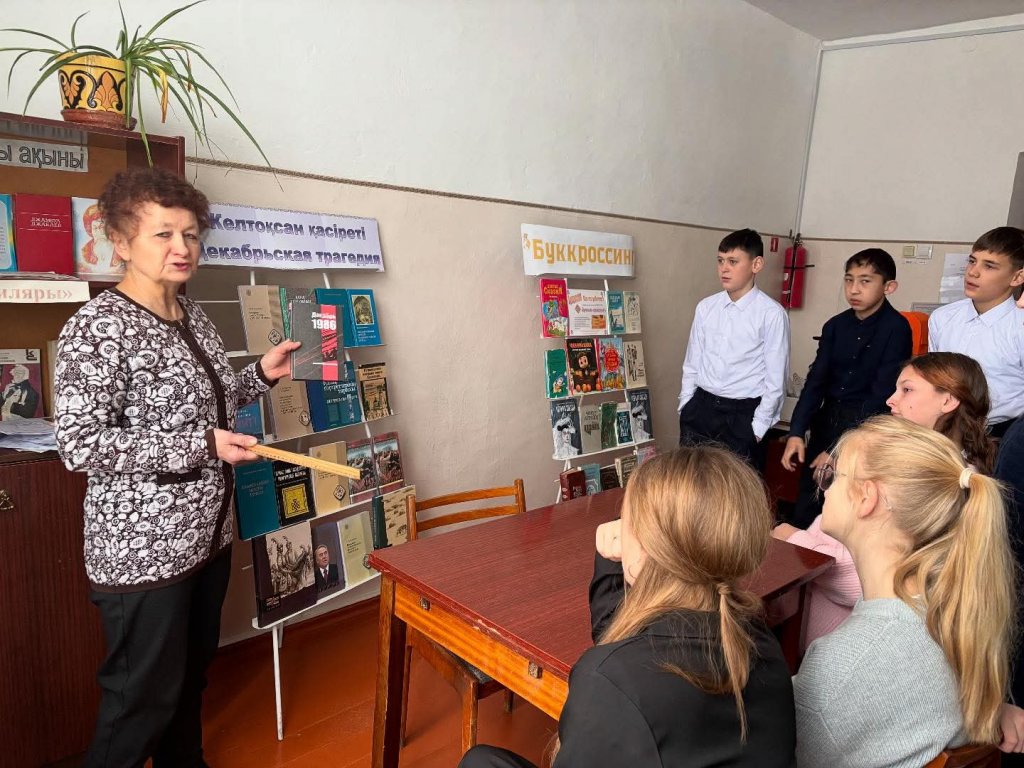 17.12.2025 Қазақстан Республикасының Тәуелсіздік күніне арналған танымдық сағат және кітап көрмесі Кітапханада Қазақстан Республикасының Тәуелсіздік күніне арналған танымдық сағат өтті. Іс-шараға қатысушылар тәуелсіз мемлекеттің қалыптасу тарихымен, ел дамуының маңызды кезеңдерімен, мемлекеттік рәміздермен және Қазақстанның көрнекті тұлғаларымен танысты. Іс-шара аясында Қазақстан тарихы, халықтың мәдениеті мен салт-дәстүрлері туралы басылымдар, сондай-ақ елдің тәуелсіздікке жету жолы мен қазіргі замандағы жетістіктерін баяндайтын кітаптар ұсынылған кітап көрмесі ұйымдастырылды. Танымдық сағат оқырмандардың бойында патриоттық сезімді қалыптастырып, туған елінің тарихына құрмет пен тәуелсіз Қазақстанға деген мақтаныш сезімін арттырды.