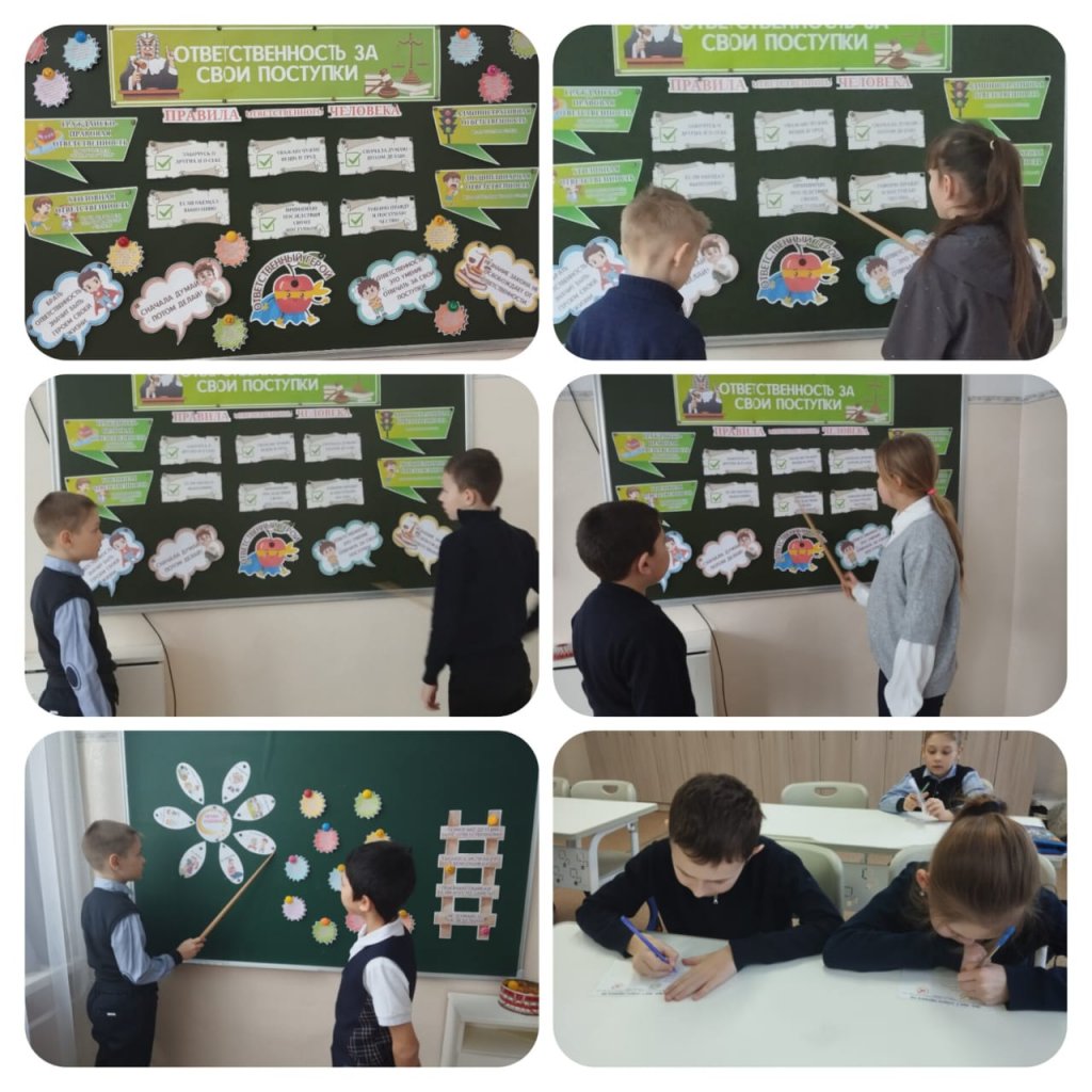 Тәрбие жұмысы аясында 2 «Б» сыныбында «Менің құқығым.«Менің жауапкершілігім» тақырыбында сынып сағаты өткізілді.Сынып сағаты оқушылардың бойында бала құқығы және өз іс-әрекеті үшін жеке жауапкершілікті сезіну туралы алғашқы түсініктерді қалыптастыру.Сабақ барысында оқушылар баланың негізгі құқықтарымен танысты. Тақырыпты жақсырақ түсінуге ықпал еткен мектеп өмірінен мысалдар: әңгіме, жағдаяттарды талқылау, сұрақ-жауаптар Диалогқа балалар белсенді қатысып, өз пікірлерін білдірді, сынып сағатының қорытындысы бойынша жауапты және жауапсыз мінез-құлық мысалдарын келтірді.